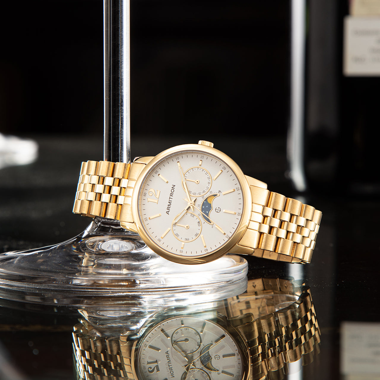 Features a moonphase & lunar calendar dials for precise measurement of elapsed time.