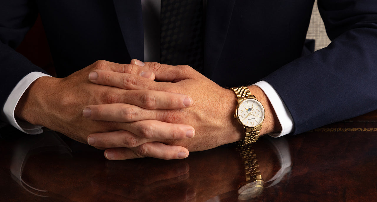 The resilient mineral crystal face helps maintain the beauty of this watch, shielding it from breakage and scratches.