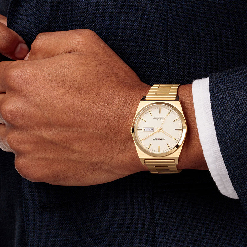 Our latest release is a feat of engineering and precision timekeeping. The stainless steel Blueprint is powered by an automatic movement, a self-winding mechanism that operates without a battery by using the wearer's natural arm movements to power the timepiece. It is built to last with style and sophistication.