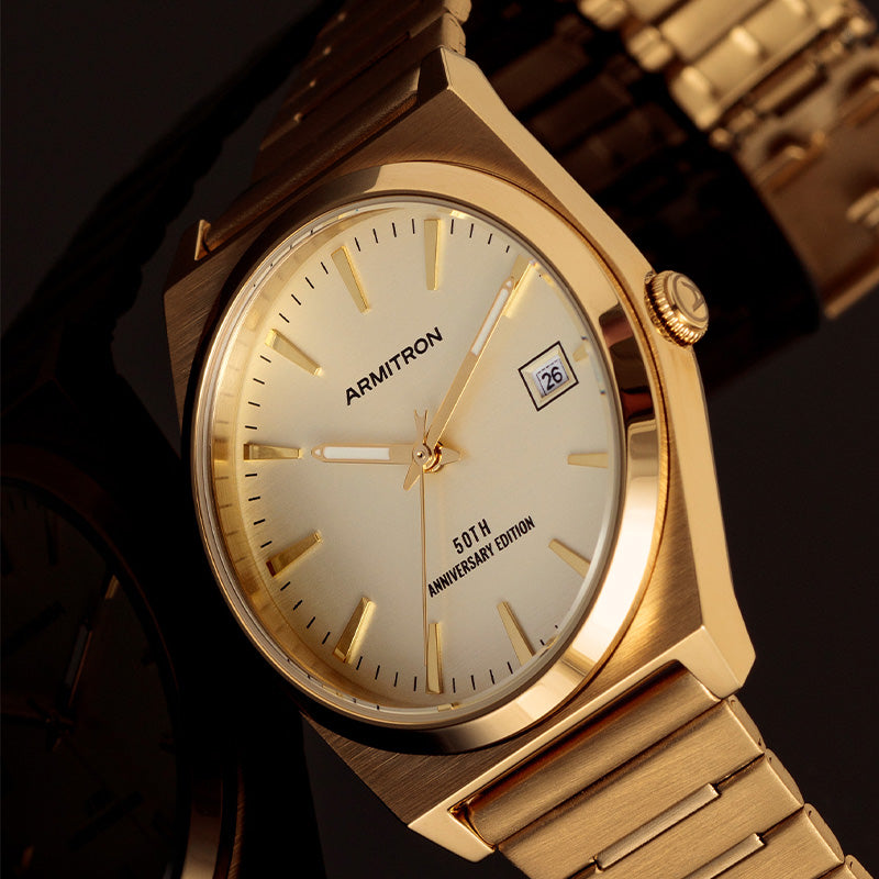 Elevate your look with this stainless steel timepiece featuring a 21 jewel automatic movement, durable ionic-plating, and a striking exhibition case back. A classic statement piece to be lived in for generations.