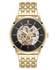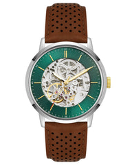 Elevate your look with this stainless steel timepiece featuring a 21 jewel automatic movement, durable ionic-plating, and a striking exhibition case back. A classic statement piece to be lived in for generations.