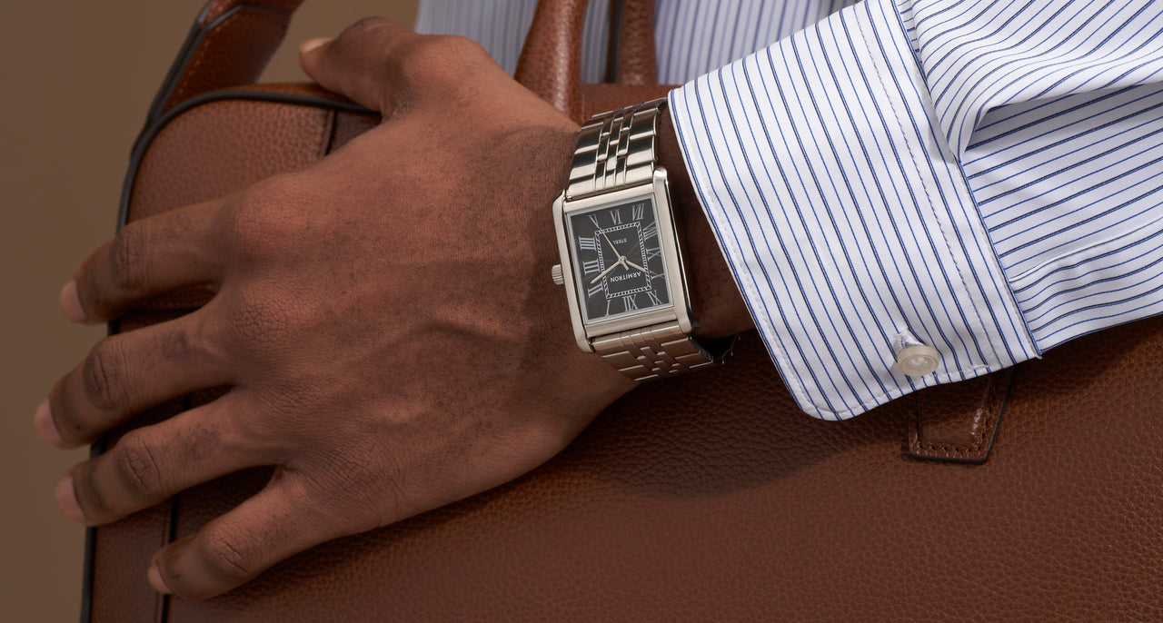 Our latest release is a feat of engineering and precision timekeeping. The stainless steel Blueprint is powered by an automatic movement, a self-winding mechanism that operates without a battery by using the wearer's natural arm movements to power the timepiece. It is built to last with style and sophistication.