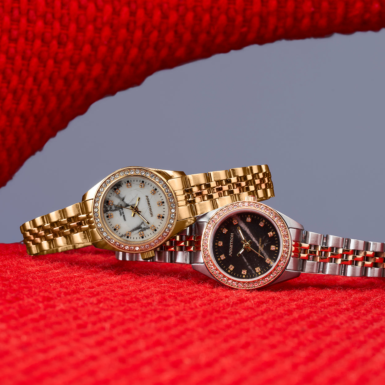 Small yet mighty, the petite Minnie is a delicate women's dress watch that packs a punch in the style department. Available in a range of stunning dial colors and finishes, this watch features genuine crystals, accented bezels, and a jewelry-inspired bracelet.