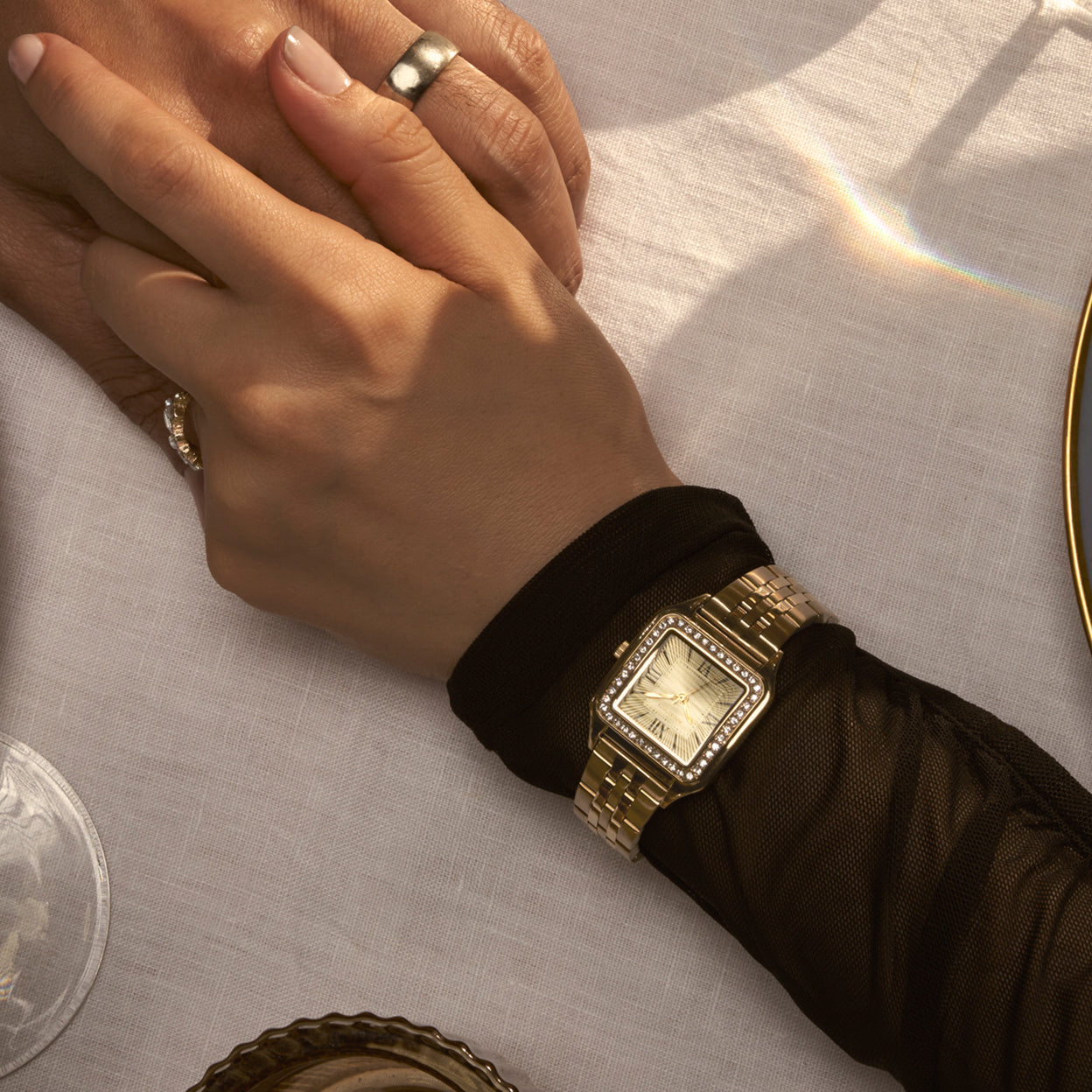 Accented with precision-set crystals for maximum brilliance and enduring elegance.