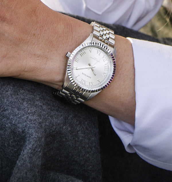 Andi is all about timeless versatility—unisex, bold, and refined. The larger case size adds a modern edge, while the silver sandblast dial with Roman numerals and stick indices keeps it classic. Finished with calfskin leather in Black/Silver, Andi transitions effortlessly from weekday meetings to weekend moments, always in style.