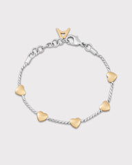 Wear your heart on your wrist with the All The Love Bracelet—a playful yet polished piece that’s packed with charm. It features five gleaming hearts that capture light (and attention) with every move. With its fluid, modern silhouette, this bracelet is made for layering—or stealing the spotlight all on its own. Whether dressing up or keeping it casual, this bracelet adds a little love to everything you do, because some pieces speak from the heart.
