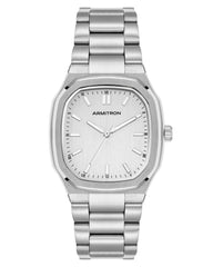 Tetra is funky reimagination of Armitron's original LED digital watch. The vintage-inspired oblong case design is finished with a silver-plated polish. The flashing digital display waits in sleek black sleep mode until activated by pressing the side button. Strap on this retro minimalist style and wear a piece of fashion history.
